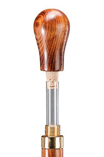 Bastone da passeggio con pomello svitabile, fiala in vetro e bicchiere.