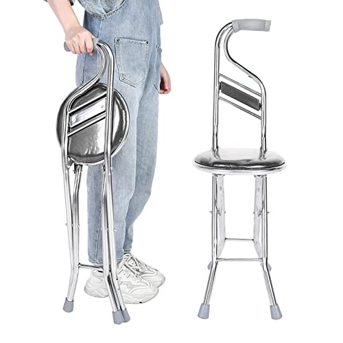 【Sedile in canna di acciaio inossidabile】 Il corpo della sedia del bastone da passeggio è realizzato in materiale di fabbricazione in acciaio inossidabile per garantire la massima durata. Tubi in acciaio inossidabile ad alta resistenza e di alta qualità, durevoli e affidabili nell'uso e aiutano a mantenere la sicurezza dell'anziano. Altezza piegata circa 35 pollici, in altezza ca. 31 pollici. Cuscinetto di carico: 200 kg/440,9 libbre (circa)