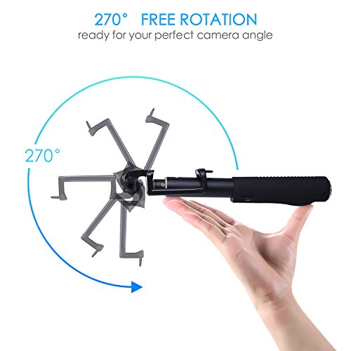 Il portacellulare del Bastoni Selfie può essere esteso al 8,5 cm, può portare quasi tutti i cellulari Android e iPhone esistenti nel mercato, il portacellulare può rotare di 270 gradi, Le permette di trovare l'ideale angolo di scattare e smontare, montare il cellulare Gopro.