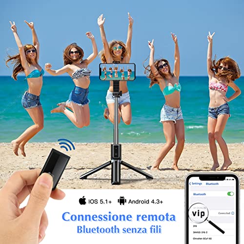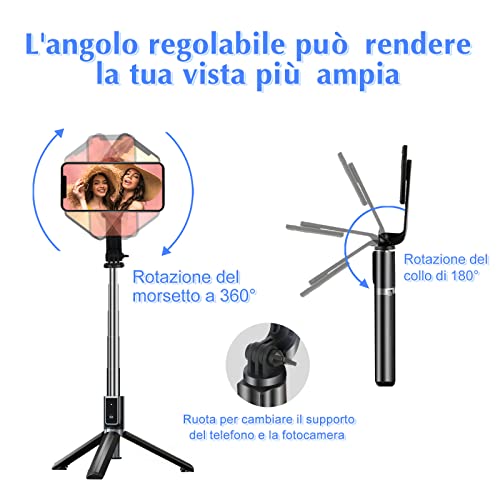 Bastone Selfie, Miscis 4 in 1 Treppiede Smartphone con Telecomando Wireless Rimovibile, Selfie Stick Portatile Ruotabile a 360° con iPhone, Galaxy, Android Smartphone, Fotocamera Piccola ecc