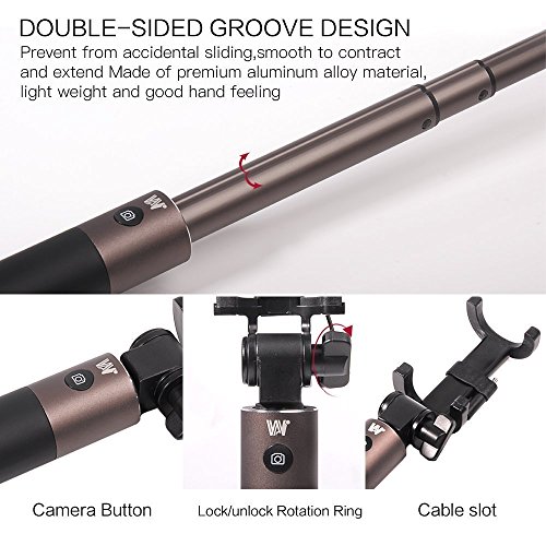 Bastone Selfie Stick per selfie Bluetooth Evershop per iPhone 7 Plus / 7 / 6S / 6S Plus / SE, Samsung Galaxy S7 / S7 Edge / S6 Edge / S6, Huawei Mate 9 Pro / P9 Plus e altri smartphone