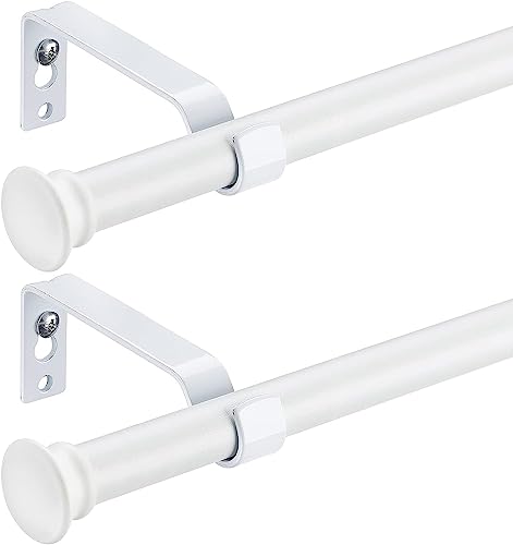 Bastone per Tenda, 71-157 cm Aste per Tende per Finestra con Coperchio e Staffe Set, Bastone per Tende Regolabile in Acciaio Inossidabile di Diametro 16 mm per Camera da Letto/Bianco Opaco 2Pezzi
