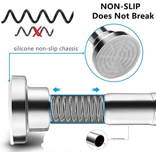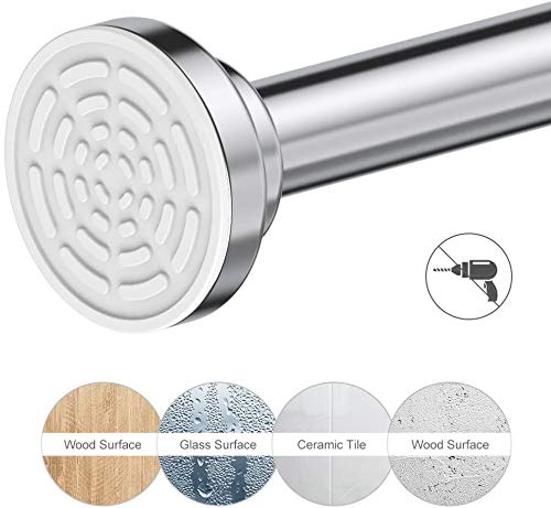 Materiale superiore: asta per tenda da doccia estensibile senza trapano. L'asta estensibile per tenda da doccia è realizzata in acciaio inossidabile 304 di alta qualità, l'asta per tenda da doccia è antiscivolo, non si fora, non arrugginisce, non si deforma mai, anticorrosione, facile da pulire, non c'è bisogno di spruzzare prima dell'uso.