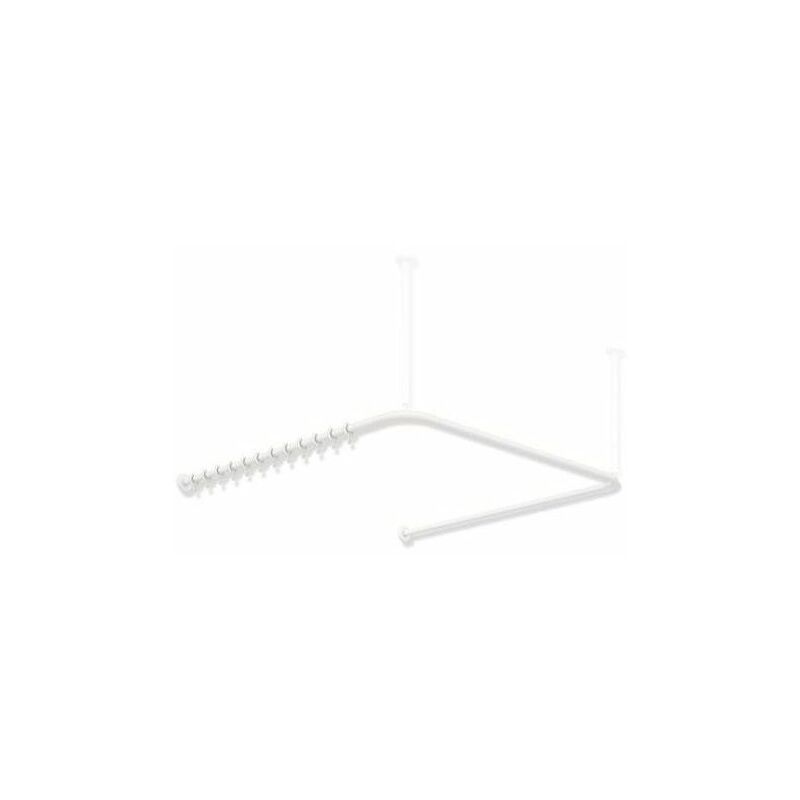 Le aste in acciaio inossidabile Ø 25 mm, verniciate a polvere, rosette Ø 70 mm, possono essere accorciate a 300 mm alle estremità, l'asta media non può essere accorciata, il fissaggio con rosette su parete e soffitto, due sospensioni del soffitto richieste, anelli in POM bianco, tra cui materiale di fissaggio privo di corrosione e testato, tenuta aggiuntiva dei punti di perforazione per mezzo dell'elemento di tenuta possibile (incluso nell'ambito di erogazione)