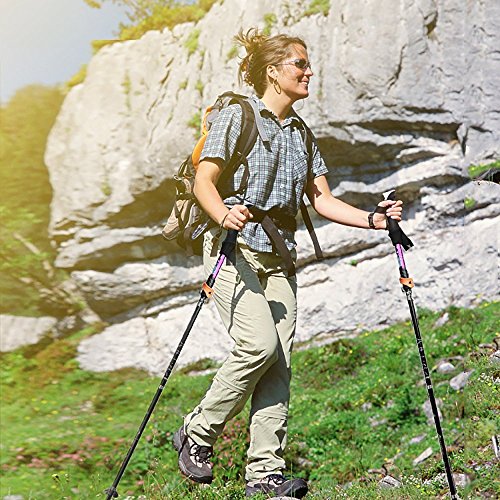 Bastone da trekking e arrampicata, pieghevole e ultraleggero, regolabile e antishock, con impugnature in schiuma EVA, colore viola, 1 pezzo, Purple 1 PCS