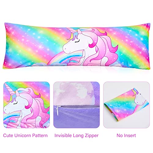 Basumee Federa Morbida per Cuscino con Unicorno, Federe per Cuscino Guanciale Lungo Morbido con Chiusura Lampo Nascosta 20"x54"/51cmX137cm