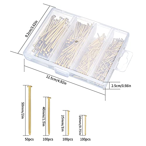 Bateya Assortimento di chiodi e perni in ottone, placcati in ottone, 350 pezzi, per pannelli di lavorazione del legno, puntine dorate per appendere alla parete (20 mm/25 mm/40 mm/50 mm)