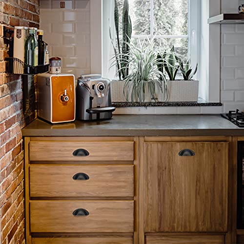 Bateya 16 Pezzi Maniglie Conchiglia Vintage Manico a Conchiglia Pomelli per Cassetti Nero, Pomelli per Armadietti Maniglia di Metallo Semicerchio Maniglia Pull Con Viti