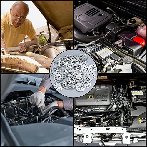 【✪ Rondelle di Isolamento Termico Pratiche】 Le rondelle di sicurezza a stella in metallo vengono utilizzate come clip di fissaggio e schermi termici sotto il cofano delle automobili. Può essere utilizzato anche per sostituire le rondelle di serraggio usurate o rotte, ampiamente utilizzate nella produzione industriale di dispositivi meccanici, ammortizzatori, cuscinetti, macchine, ecc.