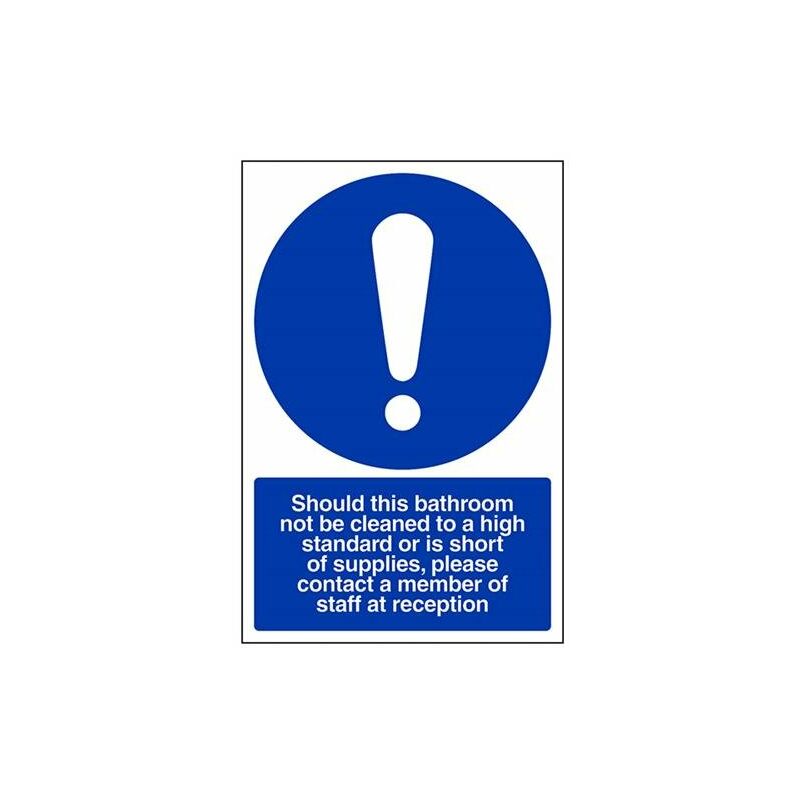 V Safety Bathroom Cleanliness/Inform A Member Of Staff Sign Ritratto 200 mm x 300 mm 1 mm in plastica rigida 200mm x 300mm