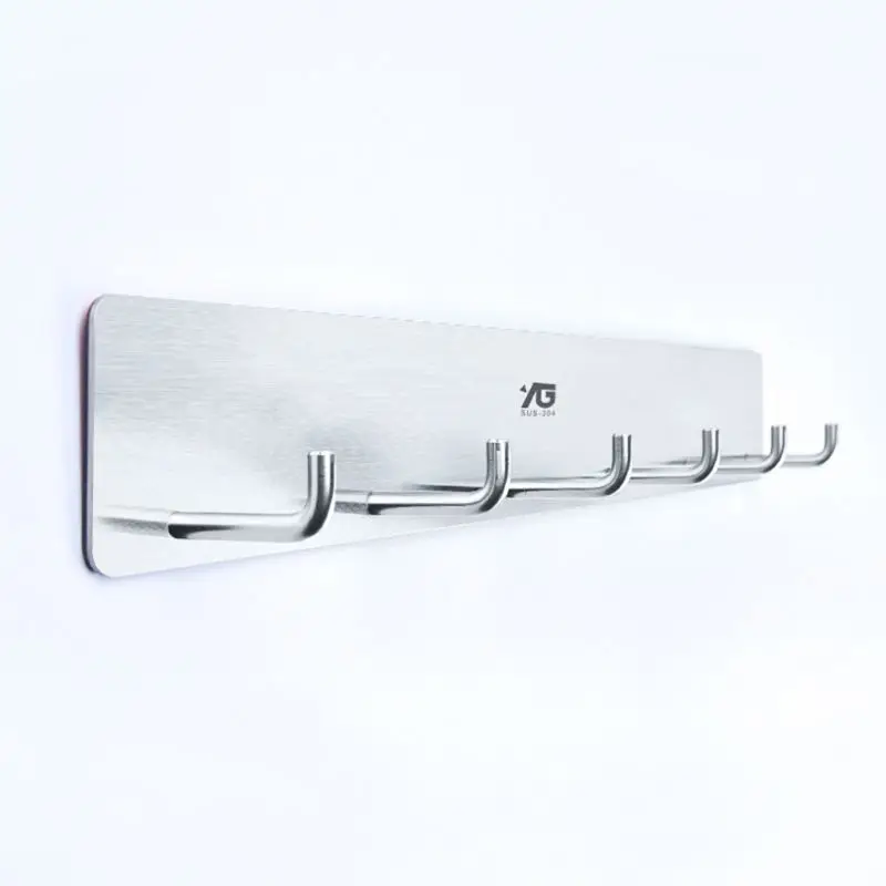 Bathroom Kitchen Office Stainless Steel Strong Viscose Self Adhesive Installation Row Hooks Key Rack Towel Hanger Wall Mount