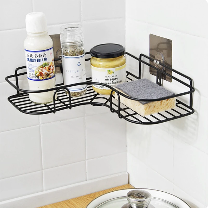 Bathroom kitchen Shelf Corner Frame Shower Shelf Wrought Iron Suction Cup No Drilling Kitchen Storage Bathroom Accessories