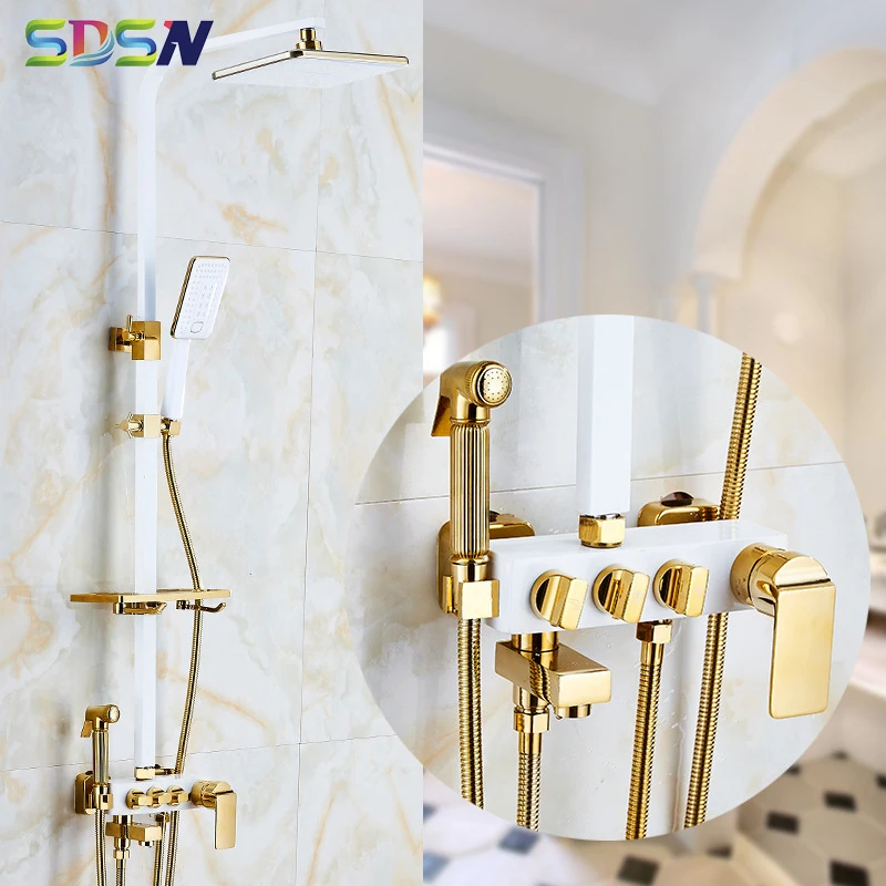 Bathroom Shower Set SDSN White Gold Bathroom Shower Sprayer Quality Brass Shower Faucet Rainfall Black Gold Bath Shower Set