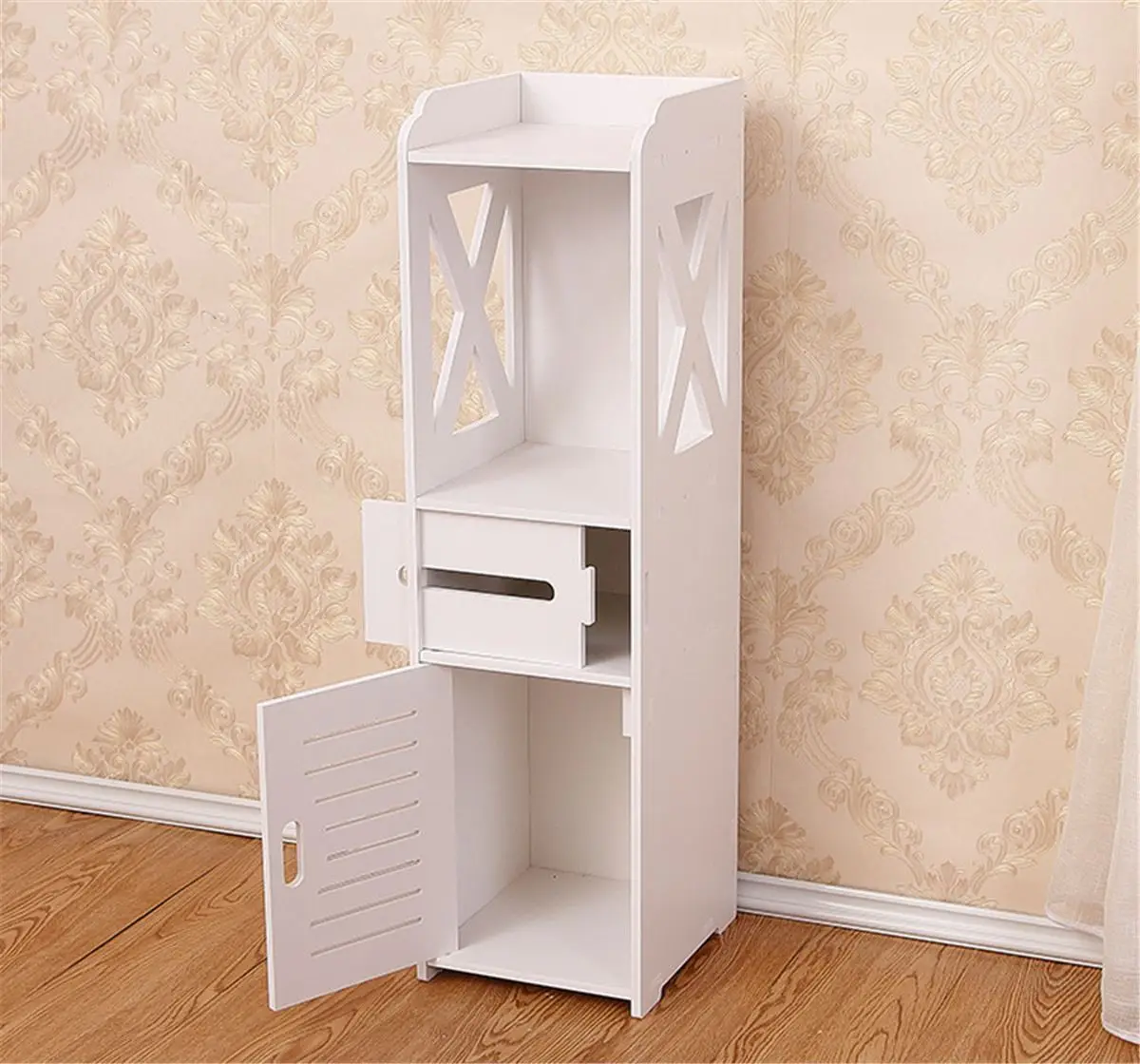 Bathroom Storage Cupboard Cabinet 4 Layers Plastic Standing Paper Towel Shampoo Organizer Living Room Bedroom Cabinet Furniture