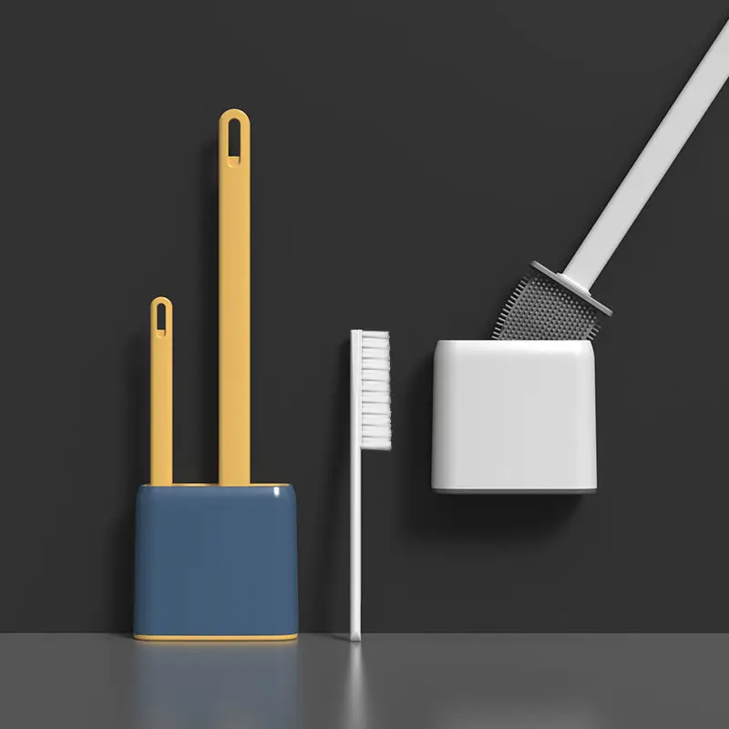 Bathroom Toilet Brush and Holder Set Bendable Flexible TPR Silicone Brush Head to Clean Corner Cleaning Brush WC Accessories