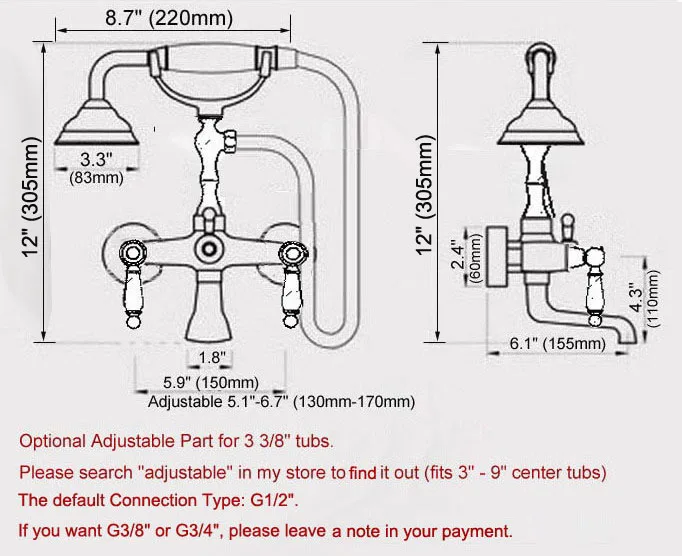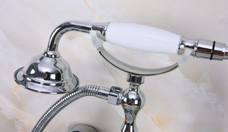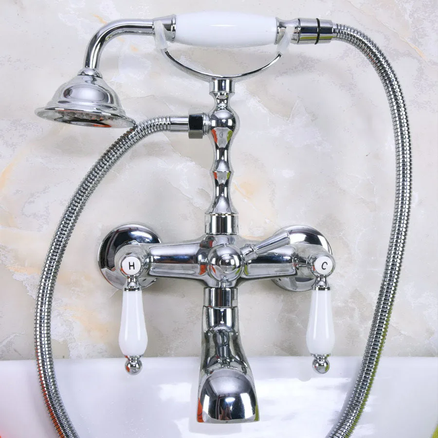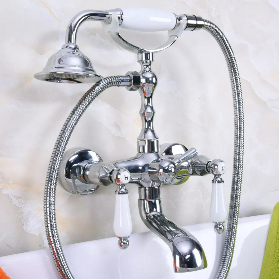 Bathtub Faucets Chrome Wall Mounted Bathtub Mixer Faucet Double Handle Tub Water Taps With Ceramic Handshower zna203