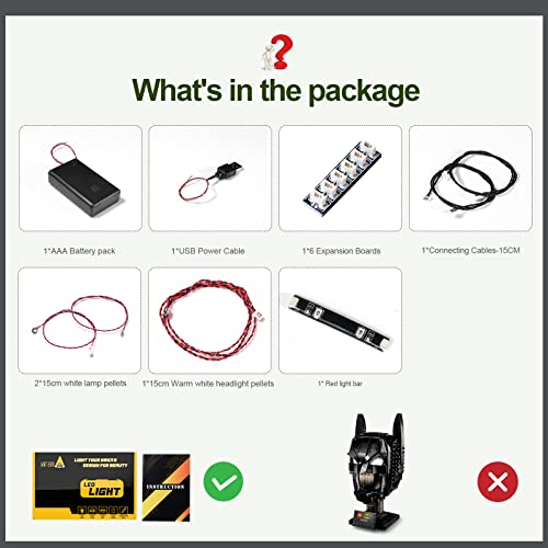 Progettato per Lego 76182: il kit di luci è particolarmente utilizzato per illuminare il kit di luci LED per Lego DC Batman Cowl 76182 e rendendolo più realistico e unico. (Il modello Lego non è incluso, kit Just Light)