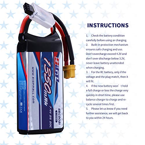 【Contenuto della confezione】: 2 batterie al litio SIGP da 7,4 V, 1350 mAh, 2S.Ogni prodotto SIGP consente il rimborso entro 30 giorni ed è garantito per 12 mesi. Contattaci se hai qualche problema, ti risponderemo il più presto possibile.