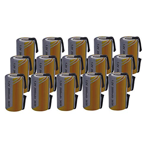 15 X Batteria Pila SC 2000mAh 2.0Ah Ni-Cd 1,2V con lamelle a saldare per pacchi batterie trapani torce allarmi