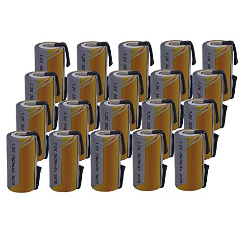 20 X Batteria Pila SC 2000mAh 2.0Ah Ni-Cd 1,2V con lamelle a saldare per pacchi batterie trapani torce allarmi