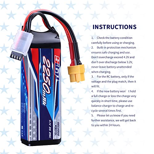 SIGP 3S 11,1V Lipo Batteria 2250mAh 25C con Spina XT60 per RC Veicoli, Auto, Carro armato, Camion, Barca, Hobby di Modello da Corsa a Rotelle