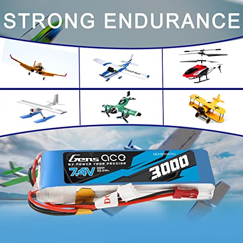 【Applicazione】: batteria Lipo Gens Ace 2S 7.4V 3000mAh appositamente compatibile per Fr Sky Taranis X9D 2019 plus / SE 2019 e altri modelli RC Racing. (Si adatta solo se la tensione, la dimensione e la spina corrispondono).