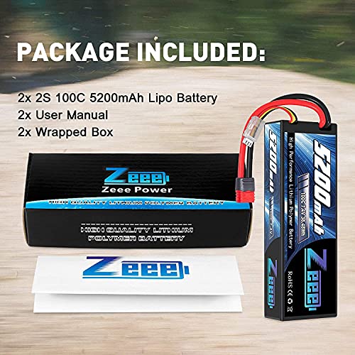 【Prestazioni elevate】 - Zeee 2S 5200mAh litio batteria, con una velocità di scarico di 100C, fornisce prestazioni molto elevate e lunga gamma di guida per il vostro veicolo di controllo remoto. Sono ampiamente utilizzati nei modelli di auto a comando remoto 1/8 e 1/10.