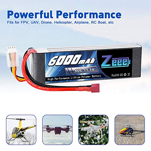 Zeee 3S Lipo Batteria 11,1V 60C 6000mAh Batteria RC con Connectore Deans T Spina per RC FPV Racing UAV Drone Evader BX RC Veicolo Auto LKW Truggy RC Nave RC Modells RC Hobby