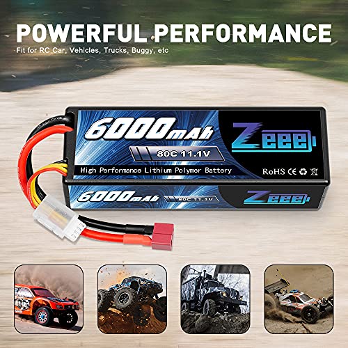 Zeee 3S Lipo Batteria 11,1V 80C 6000mAh Batteria RC Hardcase con Connectore Deans T Spina per RC Evader BX RC Veicolo Auto LKW Truggy RC Nave RC Modells RC Hobby