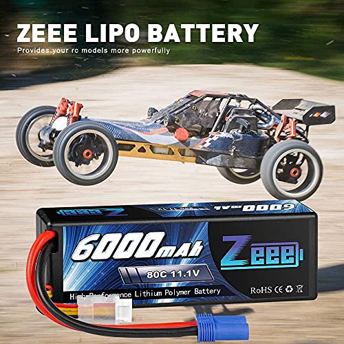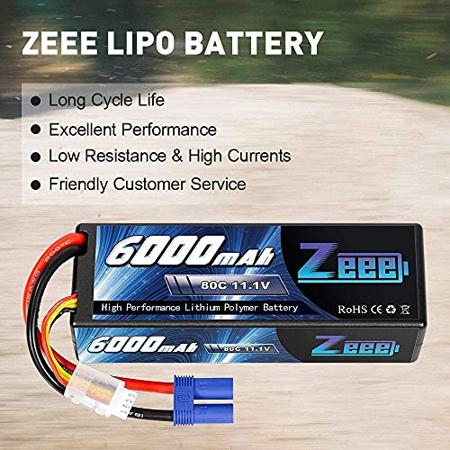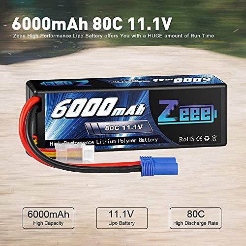 Zeee 3S Lipo Batteria 11,1V 80C 6000mAh Batteria RC Hardcase con Connectore EC5 Spina per RC Evader BX RC Veicolo Auto LKW Truggy RC Nave RC Modells RC Hobby (2 pezzi)