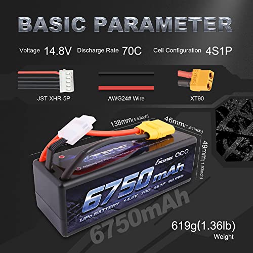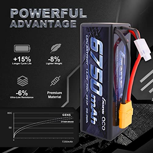 Gens ace 4S lipo Batteria 6750mAh 14.8V 4S1P 70C RC Batteria con connessione XT90, per la maggior parte delle auto RC in scala 1/8,1/10
