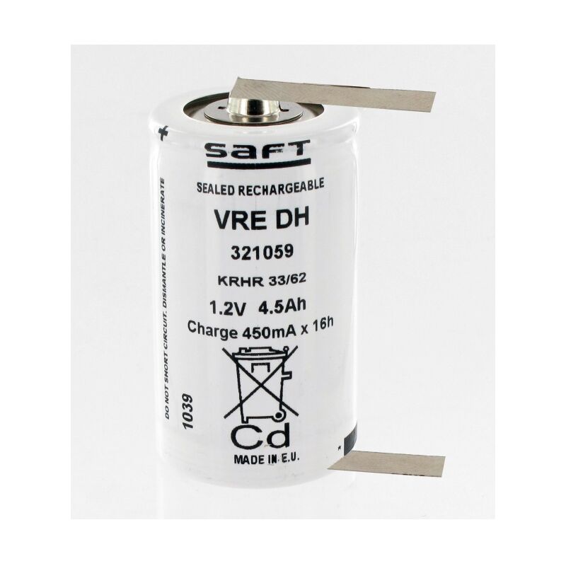 Batteria Saft 1.2V 4.5Ah VRE DH NiCd 792197 - baccelli di saldatura TETON TOP Formato D, LR20, VTD 137 KRHR 33/62, 321059 410907-104 791042 Adatto per BAES LEGRAND 60825 F, TS 88 622 791285 CLG