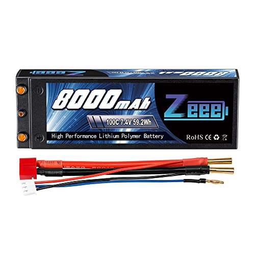 Zeee 2S Lipo Batteria 7,4V 100C 8000mAh Batteria RC HardCase con Connectore 4mm a Deans T Spina per RC Evader BX RC Veicolo Auto LKW Truggy RC Nave RC Modells RC Hobby