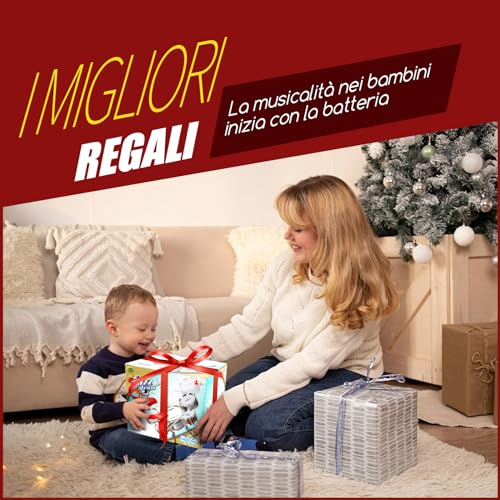Batteria per Bambini, 5 Tamburis Bambini, 8 Pezzi Tamburi Strumenti Musicali Percussione, Batteria Musicale Bambini Junior Drum Set Compleanno Natale Educativo Regalo 1 2 3 4 5 6+ anni Ragazze Ragazzi