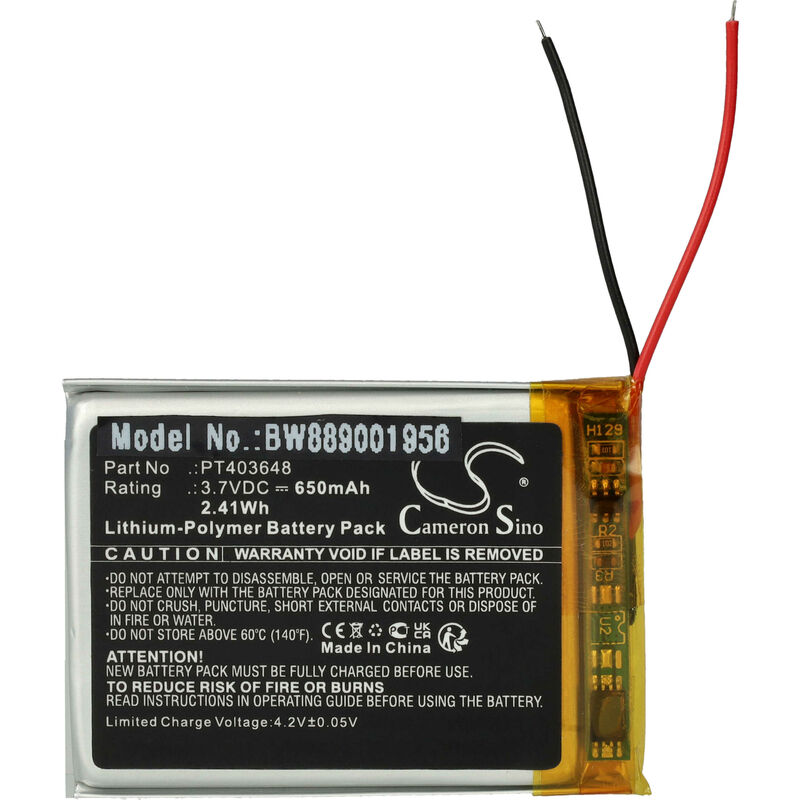 Vhbw - the clever way - Batteria ricaricabile di ricambio, compatibile e di alta qualità, ad alta capacità, per cuffie e auricolari senza fili (cuffie wireless) (Può trovare tutti i modelli corrispondenti qui di seguito) - La batteria può essere caricata con il Suo caricabatterie standard o con uno compatibile - Le nostre batterie ricaricabili soddisfano tutti i requisiti rilevanti per la sicurezza operativa CONTENUTO DELLA SPEDIZIONE: - 1x batteria ricaricabile SPECIFICHE TECNICHE: - Tecnologia: Li-Poly - Capacità: 650 mAh - Tensione: 3,7 V - Energia: 2,41 Wh - Dimensioni (Lung. x Larg. x Alt.): 4,95 x 3,6 x 0,4 cm - Numero di celle: 1 - Peso: 14 g COMPATIBILE CON: - Denon AH-GC30 Per garantire la compatibilità, verificare se la batteria ricaricabile attualmente in uso è presente nell'elenco. SOSTITUISCE: - Denon PT403648 Accessori e pezzi di ricambio di alta qualità. Per prolungare la durata di vita dei Suoi apparecchi elettrici.