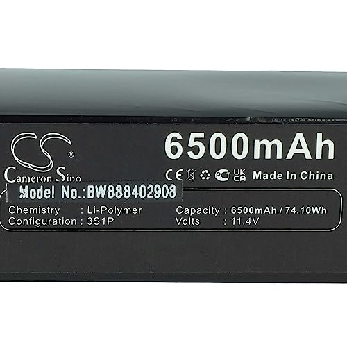 Batteria compatibile ad alta potenza | Capacità: 6500 mAh | Tensione: 11,4 V | Energia: 74,1 Wh | Tipo di cella: Li-Poly | Dimensioni: 14,4 x 6 x 4,7