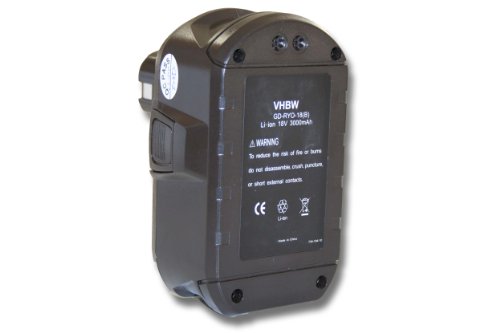 Vhbw Batteria compatibile con Ryobi CRS 1803, CRS-180L, CSL-180L, CSS-1801M, CSS-180L attrezzi da lavoro (3000mAh, 18V, Li-Ion)