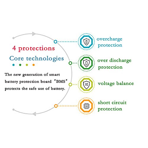 Protezione BMS (Battery Management System) incorporata per sovracorrente, sovrascarica, sovracarica, corto circuito, connessione a polarità avversa, funzioni di bilanciamento.