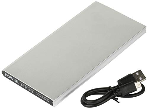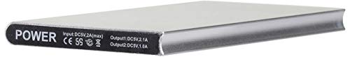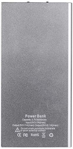 Batteria Esterna Piatta per Huawei P30 Lite Smartphone Tablet Caricabatterie Universale Power Bank 6000 mAh 2 Porte USB (Argento)
