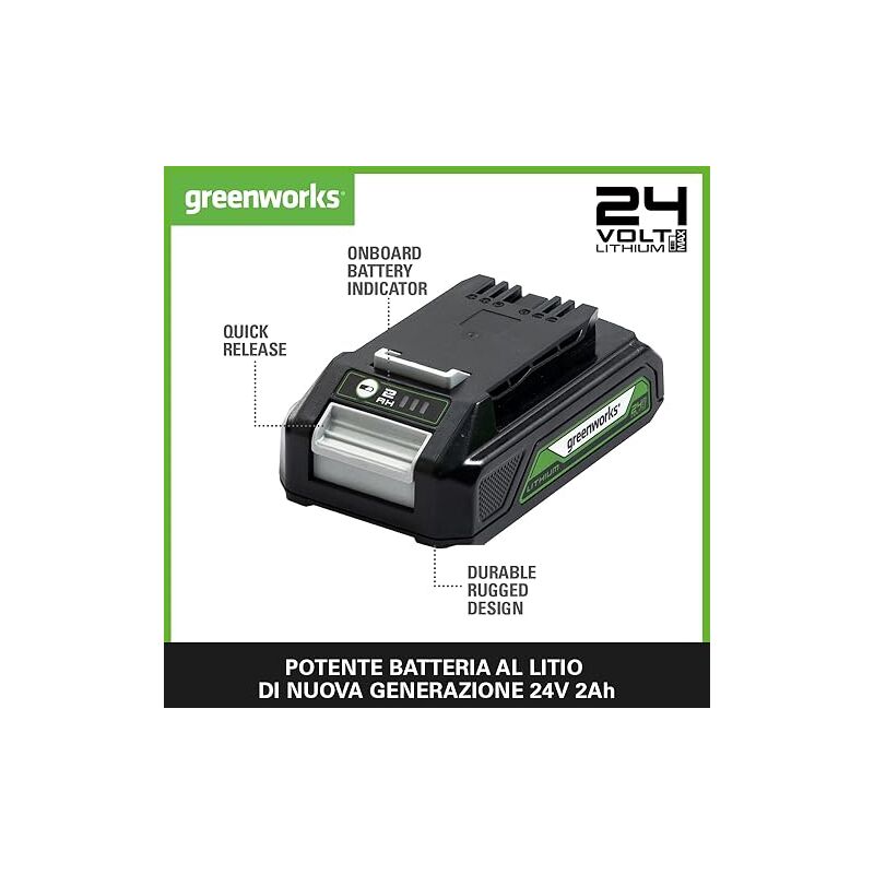 Greenworks Batteria G24B2 (batteria ricaricabile agli ioni di litio 24 V 2,0 Ah potente e ricaricabile adatta a tutti i dispositivi della serie Greenworks Tools 24 V) 2.0Ah GEN 2 / 600W Style: 2Ah / 600W