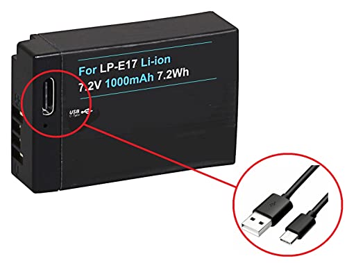 Batteria con ingresso USB-C per Canon EOS R10 77D 200D 250D 750D 760D 800D | Compatibile con Canon LP-E17 (1000mAh)