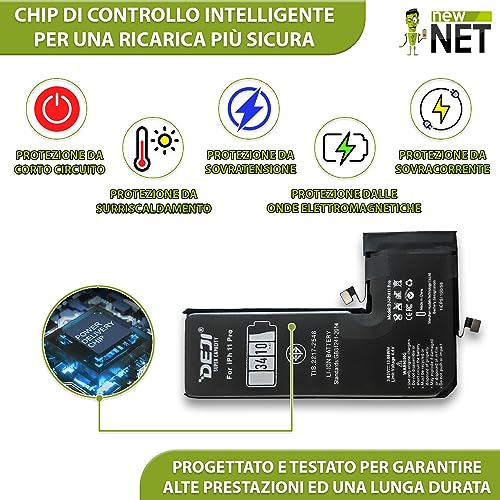 Batteria interna Deji compatibile con iPhone 11 Pro [ 3.83V - 3410mAh - 13.06Wh ]