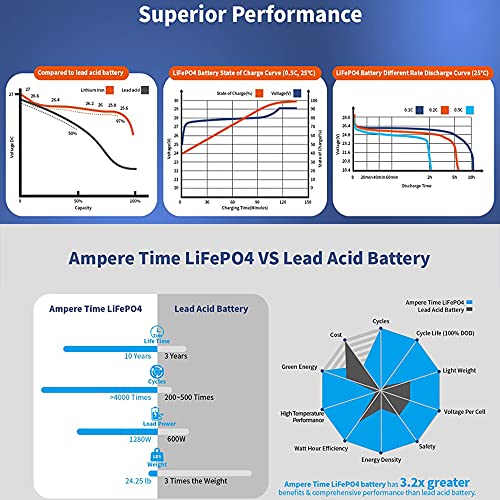 【Lunga durata e ciclo profondo】 La batteria al litio ferro fosfato (LiFePO4) può essere riciclata fino a 4000~8000 volte. La batteria LiFePO4 può sostituire perfettamente la tradizionale batteria al piombo. Questo modello utilizza celle LiFePO4 prismatiche con una migliore stabilità, una maggiore densità di energia e un peso più leggero, rendendo le batterie abbastanza buone con prestazioni ad alta temperatura, elevata potenza e bassa velocità di autoscarica.