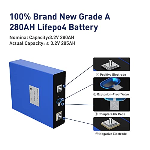 Batteria LiFePO4 3.2V 280AH 896Wh, batteria al litio con cicli profondi oltre 6000 volte, batteria al litio classe A con codice QR, adatta per impianti solari, case mobili