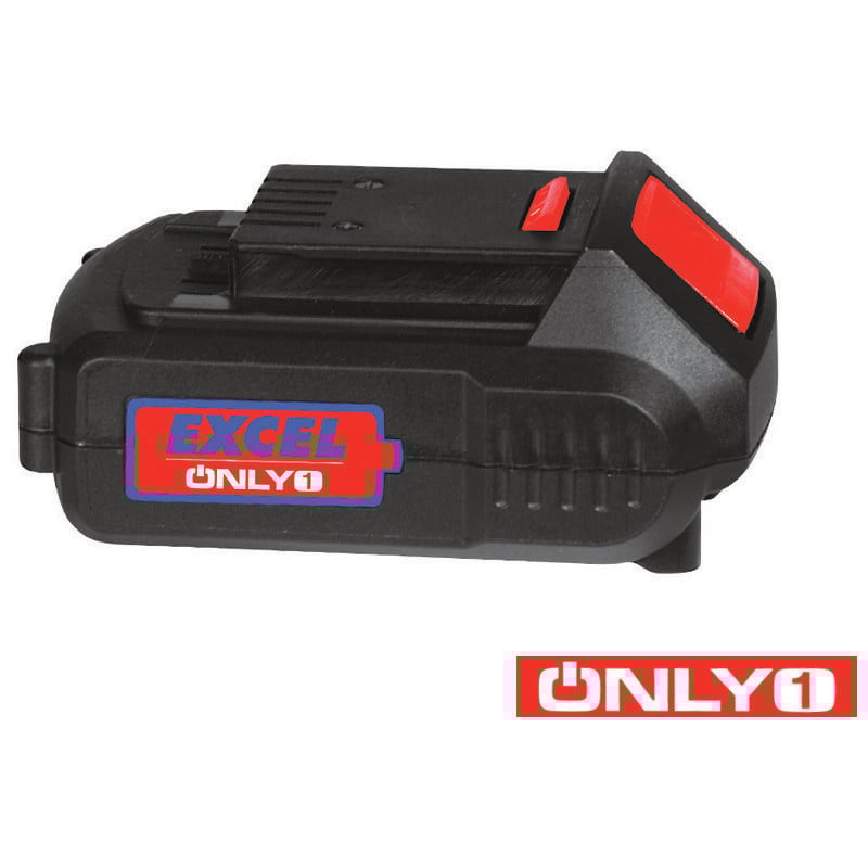 Batteria Litio 18V 2Ah - indicatore di carica - solo per linea ONLY1 - ONLY1 è un sistema che permette con un modello di batteria e un caricabatterie di alimentare indistintamente molte macchine per il fai da te (trapano, smerigliatrice, seghetto, ecc.) e il giardinaggio (tosaerba, decespugliatore, elettrosega, ecc.)