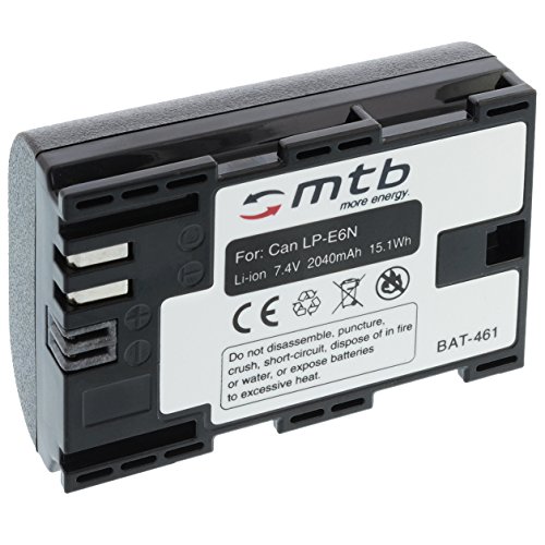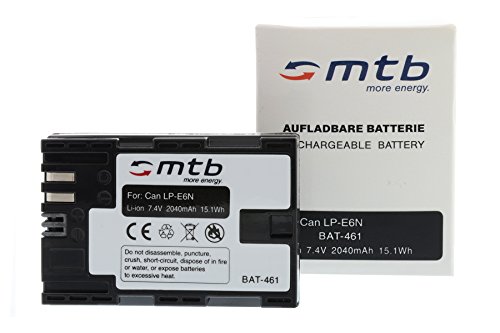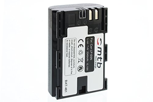 Sostituisce tipo de batteria: Canon LP-E6N, LPE6N (9486B002) - con indicazione del tempo rimanente di ripresa! Retrocompatibile con Canon LP-E6 -- Modelli di fotocamera compatibile: