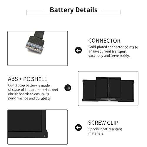 Batteria Portatile per MacBook Air 13 pollici A1466 (metà 2012, metà 2013, inizio 2014, inizio 2015,2017), A1369 (fine 2010, metà versione 2011), compatibile con A1496 A1377 A1405.