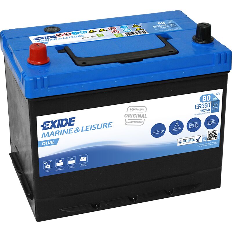 Batteria per barca EXIDE Maritime DUAL ER350 D26 80AH/510A(EN) 12V/E1
