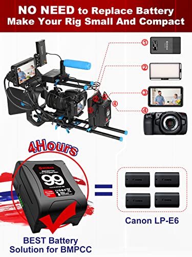 【Supporta dispositivi con corrente fino a 15 A, 200 W】 Moman Power 99 ha una corrente nominale massima fino a 15 A, è abbastanza potente da supportare più dispositivi da 200 W contemporaneamente durante le riprese, come fotocamere con batteria di tipo V piastre;