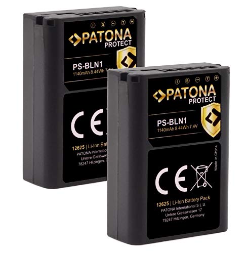2x - Batteria PATONA V1 Protect BLN-1 PS-BLN1 (1140mAh) con sensore NTC e custodia V1 - Sistema di batterie intelligente - ultima generazione